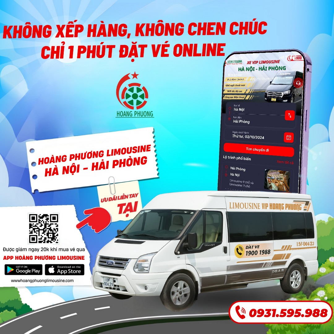 App: Hoàng Phương Limousine (Tải app dễ dàng qua Google Play / App Store - Nhận ngay ưu đãi giảm 20K)